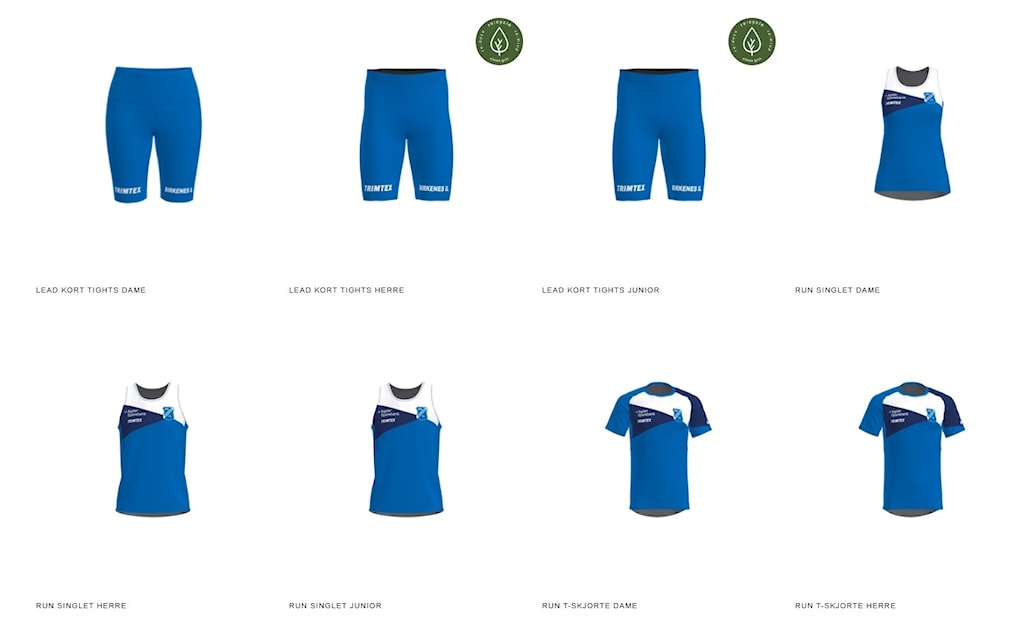 Birkenes IL betaler konkurranse tøy, som shorts, tights, singlet og trøye. Øvrige produkt (overtrekk og lue) må hver enkelt betale selv.